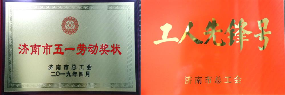 濟南市“五一勞動獎狀”(濟南市總工會,2019.5) 投資發展部:工人先鋒號(濟南市總工會,2018.4)