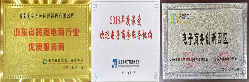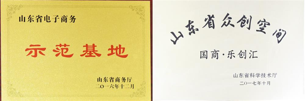 山東省跨境電商行業優質服務商(山東省跨境電子商務協會,2017) 2018年度最受歡迎電子商務服務機構(山東省電子商務促進會,2018) 電子商務創新園區("國際電子商務服務產業博覽會山東省電子商務促進會",2016) 山東省電子商務示范基地(山東省商務廳,2016) 山東省眾創空間(山東省科學技術廳,2017)
