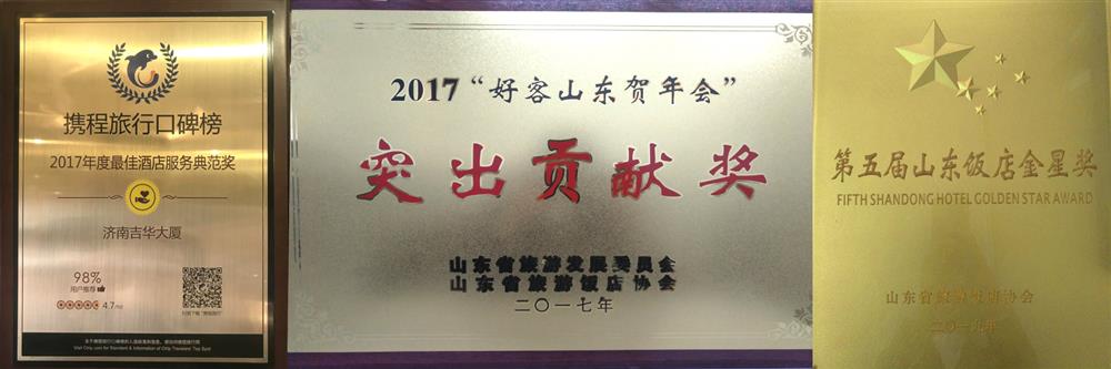 2017“好客山東賀年會”突出貢獻獎(山東省旅游發展委員會、山東省旅游飯店協會, 2017.1)