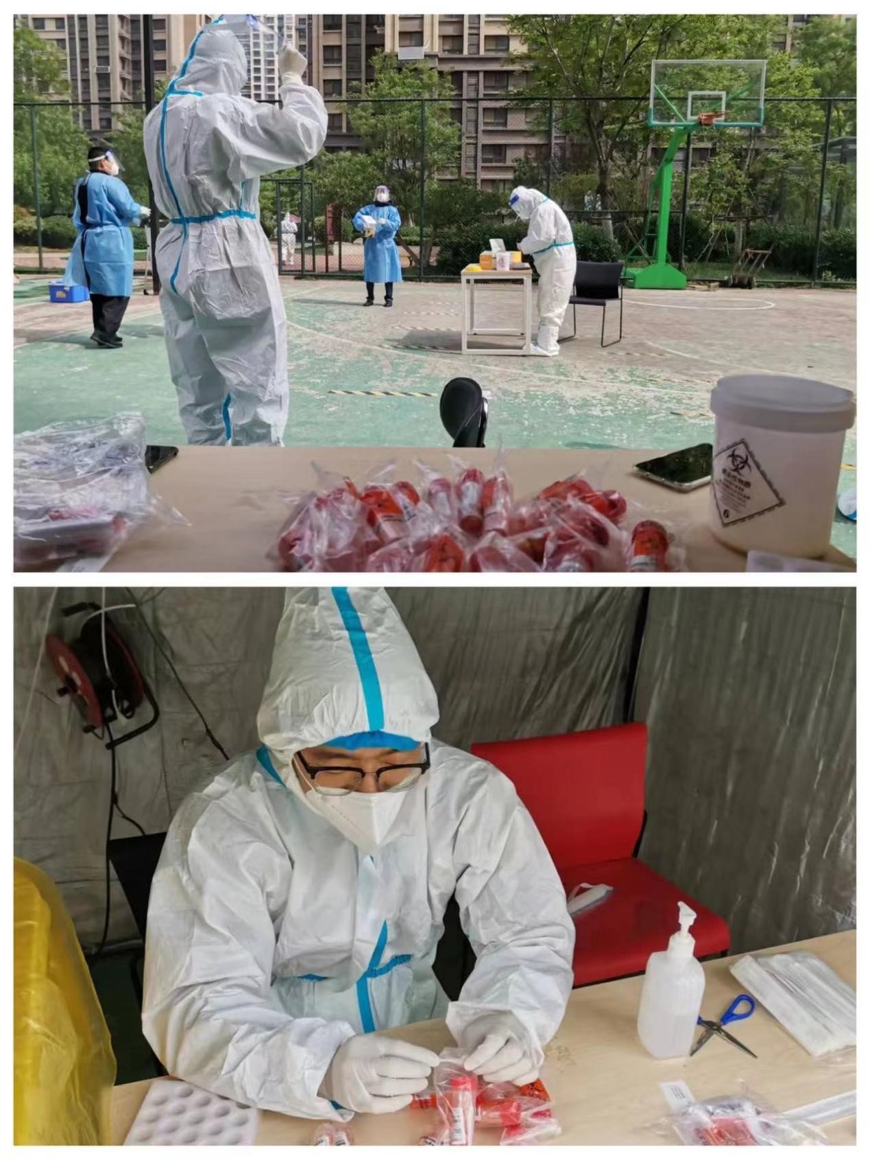 社區疫情防控情況復雜,工作量巨大,但沈俊峰始終保有退伍軍人的正直秉性,帶領兩位年輕人沖鋒在前。到崗第二天,三名下沉社區人員就立即投入工作狀態,協助社區嚴格落實每一個居民應檢盡檢,從早上7點到晚上11點,連續工作十多個小時,完成近3000人的核酸檢測工作。