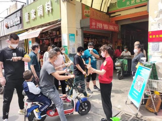 為確保鳳凰山路壹號商城疫情防控工作落細落實,新匯成公司采取以黨員帶群眾的形式,動員全體職工參與疫情防控。五一節假日期間,全體職工堅守崗位,嚴格執行“雙檢一測一登記”流程,對進場的所有人員進行“雙碼”查驗、測量體溫并進行追本溯源信息登記,每日對進出場的200余輛車輛進行消毒。