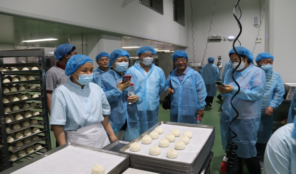 座談會召開之前,王浩濤書記等領導帶領老黨員代表現場參觀了長清食品產業園。在園區內各生產車間現場,寬敞明亮的車間環境、一排排整齊劃一的流水線設備,統一著裝精神抖擻的員工們,讓老黨員代表眼前一亮,心潮澎湃,感慨萬千,大家感慨:金德利快餐終于從手工作坊跨越到現代化工廠生產,這樣的改變是原來不敢想像的,大家對未來發展前景充滿信心和期待。