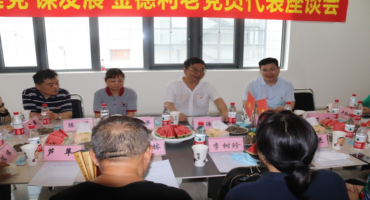 為體現金德利集團黨委對老黨員的關心,使老黨員了解企業發展情況,為金德利發展建言獻策。在建黨101年華誕,金德利集團黨委于6月28日上午召開了慶建黨謀發展金德利老黨員代表座談會。產發集團黨委委員、副總經理、金德利集團黨委書記王浩濤、黨委副書記、董事長朱風亮、黨委委員、副總經理黃蕾、黨群部部長陳立濤以及老黨員代表參加了座談會。