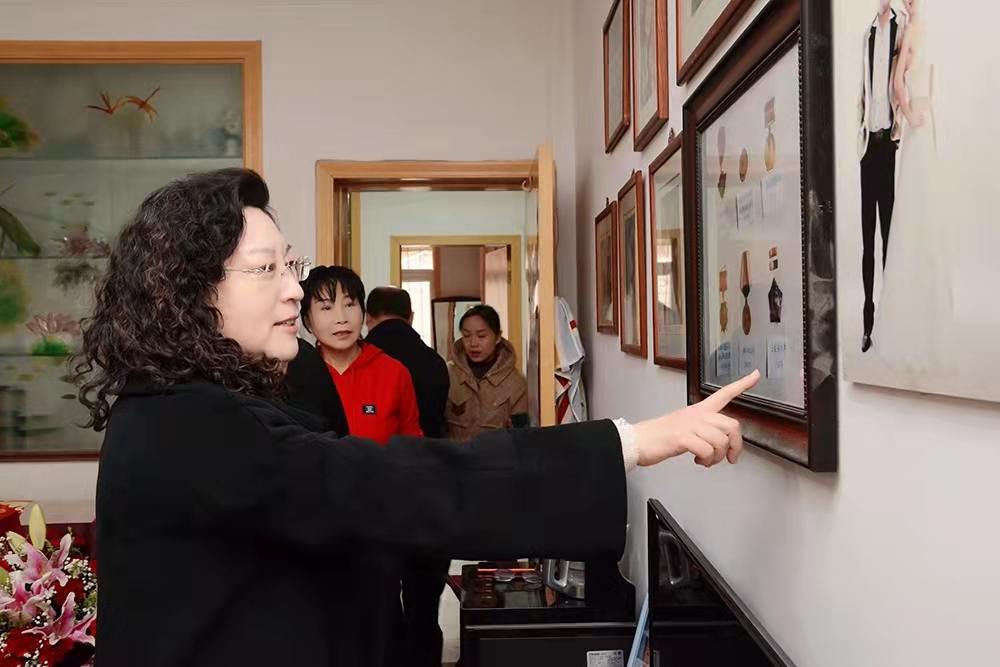 黃蓓一行首先來到齊魯化纖集團濟南國棉二廠離休老黨員高昇長家中,與老人親切交談,聊生活,問家常。97歲的高昇長精神矍鑠,老人回憶暢談過往的工作事跡和場景,對集團公司領導的慰問表示感謝,表示今后將繼續關注集團的發展,祝愿企業越來越好。黃蓓指出,老黨員為企業發展辛苦奮斗幾十年,見證了企業的成長歷程,作出了積極的貢獻,是我們寶貴的財富和學習的榜樣。