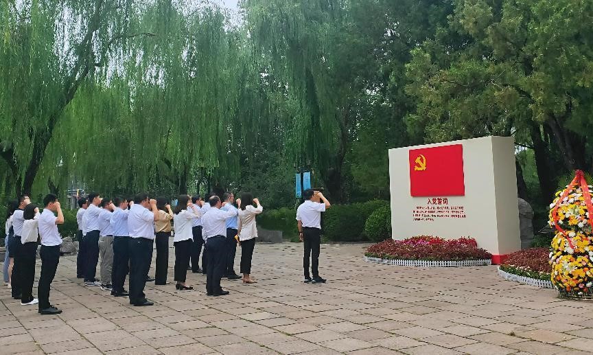 在美銘廣場,黨員干部們一同為王盡美、鄧恩銘紀念石雕獻花。隨后,由集團黨委委員、紀委書記盧剛帶領全體黨員干部,現場宣誓,重溫入黨誓詞,回顧入黨宣誓時的莊嚴承諾和堅定決心,提醒全體黨員始終不忘初心,牢記作為黨員的責任和使命,時刻以優秀共產黨員的標準嚴格要求自己,遵守黨的紀律,積極投身黨的事業,發揮黨員的先鋒模范作用。